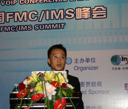 英飛凌科技公司通訊接入產(chǎn)品事業(yè)部VoIP產(chǎn)品市場(chǎng)經(jīng)理孫任首先發(fā)言,他演講的題目是,“超越語(yǔ)音— 面向網(wǎng)絡(luò)與業(yè)務(wù)演進(jìn)的VoIP和IMS解決方案”。