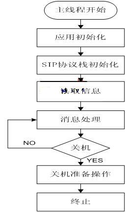 圖2中的“應用初始化”包括建立消息讀取線程等;“SIP協(xié)議棧初始化”包括建立協(xié)議棧主線程、注冊回調函數(shù)、協(xié)議棧其它模塊的初始化及消息隊列的建立等;“關機準備操作”首先進行注銷操作,接著終止消息讀取線程和協(xié)議棧主線程,釋放軟件應用模塊和協(xié)議棧各模塊占用的資源。