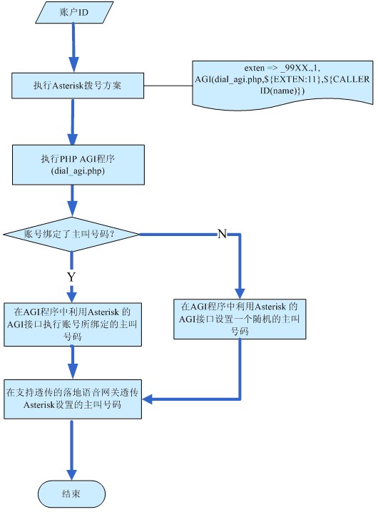Asterisk的后臺(tái)PHP AGI程序的詳細(xì)設(shè)計(jì)主叫號(hào)碼透傳流程設(shè)計(jì)如圖2所示。