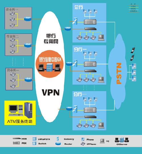 我公司現(xiàn)根據銀行的特點,在保證內部網絡穩(wěn)定、安全、高效和保密性高的特殊要求下幫助銀行實現(xiàn)VOIP,以大大的減輕銀行的營運費用,同時也考慮到銀行將來的網絡擴展與升級換代,在現(xiàn)有的網絡上實現(xiàn)數據與語音的同步傳輸,使原有的資源得到了充分的利用,又使得新建的網絡能順利的加入現(xiàn)有的VOIP系統(tǒng),使新的網點一開始就可以低成本運作。