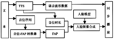 系統(tǒng)由語音合成部分提供時間同步信息,實現(xiàn)完全同步的語音和圖像播放。系統(tǒng)中語音的發(fā)音速度可調,圖像以固定的幀速率播放,不受語音快慢的影響。當語音速度加快時,每個音節(jié)的圖像幀數將減少;反之,當語音速度放慢時每個音節(jié)的圖像幀數將增加。圖像的幀速率可根據系統(tǒng)性能來調節(jié),使系統(tǒng)在各種性能的機器上均能保持語音與圖像的同步。