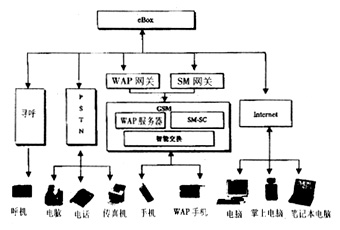 ----eBox結(jié)構(gòu)如圖所示。從圖中我們還可以看出,只有尋呼提供的服務(wù)是單向的,而且有的無線數(shù)據(jù)服務(wù)提供商也激進地認(rèn)為:尋呼業(yè)將被淘汰出局,然而為什么掌上信息公司還要為尋呼業(yè)提供這個解決方案呢?