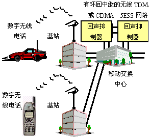 為了確保在一個(gè)本地?zé)o線到無線呼叫中包含有Studio Sound功能,回聲抑制器必須安裝在兩個(gè)附加位置之一。對(duì)于使用5ESS交換機(jī)的CDMA或TDMA移動(dòng)交換中心,這是通過環(huán)回中繼實(shí)現(xiàn)的,兩個(gè)回聲抑制器背靠背安裝在MSC內(nèi)交換機(jī)的兩個(gè)中繼上。對(duì)于GSM網(wǎng)絡(luò),回聲抑制器可以安裝在A接口上也就是MSC和基站之間的鏈路上,這些配置中的每一個(gè)都允許本地?zé)o線呼叫的兩側(cè)都獲得完整的Studio