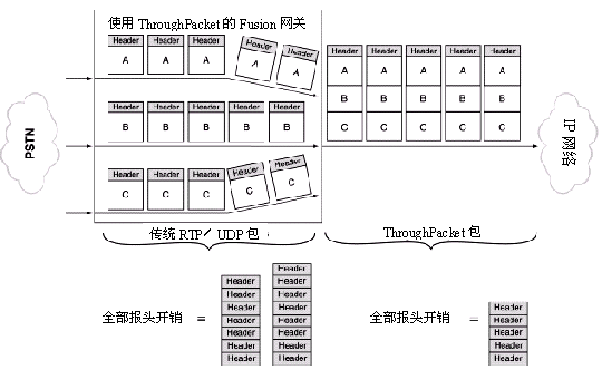 ThroughPacket通過把來自多個Fusion語音通道的語音載荷組合進一個大包來實現這一功能。需要說明的是:Clarent ThroughPacket是Clarent公司和NMS公司合作開發(fā)的,NMS公司完全有權把這一技術應用于Fusion平臺以及其它的NMS產品之中。