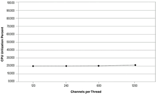 基于1200通道, Dialogic工程師測試了每個線程不同的通道數(shù)(例如每個線程120端口和240端口). 測試結(jié)果表明,