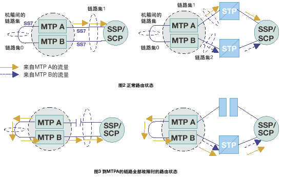 當(dāng)連接到MTP A或連接到 MTP B的所有鏈路均發(fā)生故障時(shí),訊息通過MTP A和MTP