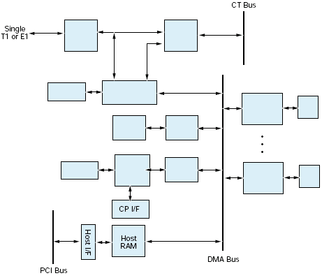 DM/F300-1E1-PCIU 板卡也可以使用一個可選的CT Bus/SCbus 轉換器與現有的SCbus產品連接.