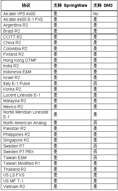 表 1. 支持SpringWare 和 DM3 板卡的 PDK 協(xié)議
